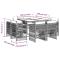 Ensemble à manger de jardin 9 pcs coussins gris résine tresséeCet ensemble de salle à manger de jardin est un excellent choix pour les repas en plein air ou pour vous détendre dans le jardin, dans l'arrière-cour ou sur la terrasse. Matériau durable : la résine tressée, également connue sous le nom de poly rotin, est un matériau synthétique solide et nécessitant peu d'entretien qui ressemble au rotin naturel. Il est léger, facile à nettoyer et couramment utilisé pour les meubles d'extérieur en raison de sa durabilité et de ses propriétés de résistance aux intempéries. Rangement compact : ces chaises sont dotées d'un dossier rabattable, ce qui permet de les ranger facilement sous la table. Une fois pliées, elles se rangent parfaitement sous la table, formant un cube peu encombrant. Expérience d'assise confortable : ce mobilier d'extérieur, doté de coussins épais, offre une expérience d'assise confortable. Housse amovible et lavable : ces coussins sont dotés de housses amovibles pour un lavage et un entretien faciles. Les housses de coussin ont un rabat à l'arrière pour une fixation facile aux dossiers. Dessus en verre : le dessus de la table d'extérieur est fabriqué en verre trempé solide et durable, ce qui le rend facile à nettoyer avec un chiffon humide et ajoute une touche d'élégance à votre espace extérieur. Bon à savoir : Pour que vos meubles d'extérieur restent beaux, nous vous recommandons de les protéger avec une housse imperméable.