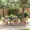 Ensemble à manger de jardin 9pcs coussins Bois teck massif GrisCet ensemble de jardin en bois est parfait pour vos repas ou pour vous détendre dans le jardin ou sur le patio. Il est également idéal pour une utilisation à l'intérieur. Fabriquée en bois dur de teck extrêmement durable, cette pièce de meuble en teck a été chevronnée, séchée au four puis finement poncée pour lui donner un aspect très lisse. Le bois de teck est connu pour sa résistance exceptionnelle aux intempéries, ce qui le rend bien plus adapté aux meubles de jardin que tout autre type de bois. Le bois de teck est le choix idéal si vous souhaitez acheter une pièce de meubles de jardin durable. L'ensemble est appliqué avec une belle finition pour donner au bois une couleur chaude. La table comprend un trou pour un parasol afin de vous protéger du soleil. Les dossiers des chaises sont réglables en 5 positions, de sorte que vous puissiez toujours trouver les positions les plus confortables. Avec un design pliable, les chaises peuvent être pliées pour économiser de l'espace lorsqu'elles ne sont pas utilisées. Elles sont également légères et faciles à déplacer. Les coussins bien rembourrés offrent le plus grand confort et les housses de coussin sont amovibles pour un lavage facile. L'ensemble de meubles vous offre un confort et une grande commodité pour passer du temps avec votre famille et vos amis. De plus, cet ensemble est également facile à nettoyer avec un chiffon humide. Maximum 110 kg par siège. ,