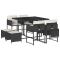 Ensemble à manger de jardin 9pcs coussins noir résine tresséeCet ensemble de salle à manger de jardin est un excellent choix pour les repas en plein air ou pour vous détendre dans le jardin, dans l'arrière-cour ou sur la terrasse. Matériau durable : la résine tressée, également connue sous le nom de poly rotin, est un matériau synthétique solide et nécessitant peu d'entretien qui ressemble au rotin naturel. Il est léger, facile à nettoyer et couramment utilisé pour les meubles d'extérieur en raison de sa durabilité et de ses propriétés de résistance aux intempéries.Rangement compact : ces chaises sont dotées d'un dossier rabattable, ce qui permet de les ranger facilement sous la table. Une fois pliées, elles se rangent parfaitement sous la table, formant un cube peu encombrant. De plus, les tabourets peuvent également être rangés sous les chaises, maximisant encore davantage l'efficacité de l'espace.Expérience d'assise confortable : ce mobilier d'extérieur, doté de coussins épais, offre une expérience d'assise confortable.Housse amovible et lavable : ces coussins de siège sont dotés de housses amovibles pour un lavage et un entretien faciles. Les housses de coussin ont un rabat à l'arrière pour une fixation facile aux dossiers.Dessus en verre : le dessus de la table d'extérieur est fabriqué en verre trempé solide et durable, ce qui le rend facile à nettoyer avec un chiffon humide et ajoute une touche d'élégance à votre espace extérieur. Bon à savoir : Pour que vos meubles d'extérieur restent beaux, nous vous recommandons de les protéger avec une housse imperméable. Maximum 110 kg par siège.