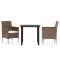 Ensemble à manger de jardin avec coussins 3 pcs Marron et noirCet ensemble de salle à manger de jardin est un excellent choix pour manger ou vous détendre dans l'espace extérieur ! Les cadres en acier enduit de poudre rendent la table et les chaises robustes et stables pour une utilisation quotidienne à l'extérieur. Grâce à la résine tressée résistante à l'eau, les chaises sont faciles à nettoyer et conviennent à un usage quotidien. Le dessus de table en verre lisse est facile à nettoyer avec un chiffon humide et parfait pour placer les repas, les boissons et autres articles décoratifs. Remarque : afin de prolonger la durée de vie des meubles d'extérieur, nous vous recommandons de les protéger avec une housse imperméable. Maximum 110 kg par siège. Soyez conscient du risque de feux ouverts et d'autres sources de forte chaleur à proximité du produit.