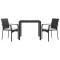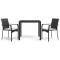 Ensemble à manger de jardin avec coussins 3 pcs NoirCet ensemble de salle à manger de jardin tendance, au design élégant et contemporain, est un excellent choix pour manger ou vous détendre dans votre jardin. Matériau résistant aux intempéries : la résine tressée, également connue sous le nom de rotin poly, résiste aux intempéries et est facile à nettoyer. Elle reste belle à l'extérieur pendant une longue période. Elle offre une excellente qualité, commodité et un aspect esthétique.Cadre robuste : les cadres en acier enduit de poudre rendent l'ensemble de salle à manger d'extérieur robuste et stable pour une utilisation quotidienne à l'extérieur.Dessus de table pratique : le dessus lisse de la table de jardin est en verre trempé, facile à nettoyer avec un chiffon humide. De plus, le dessus robuste est parfait pour placer des repas, des boissons et d'autres objets décoratifs.Conception modulaire : l'ensemble de salle à manger de jardin est flexible et facile à déplacer, vous pouvez donc le combiner avec d'autres segments modulaires dans la boutique en ligne pour créer vos propres configurations d'ensemble de salle à manger de jardin !Expérience d'assise confortable : le dossier ajoute un confort d'assise supplémentaire à la chaise de jardin. De plus, les coussins bien rembourrés vous permettent de vous asseoir confortablement. Bon à savoir :Pour faciliter au maximum le montage, chaque produit est livré avec des instructions. Remarque :Pour que vos meubles d'extérieur restent beaux, nous vous recommandons de les protéger avec une housse imperméable. Maximum 110 kg par siège.