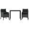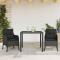 Ensemble à manger de jardin avec coussins 3 pcs NoirCet ensemble de salle à manger de jardin est un excellent choix pour les repas en plein air ou pour vous détendre dans le jardin, l'arrière-cour ou le patio. Matériau durable : la résine tressée, également connue sous le nom de poly rotin, est un matériau synthétique solide et nécessitant peu d'entretien qui ressemble au rotin naturel. Il est léger, facile à nettoyer et couramment utilisé pour les meubles d'extérieur en raison de sa durabilité et de ses propriétés de résistance aux intempéries.Expérience d'assise confortable : ce mobilier d'extérieur, doté de coussins épais, offre une expérience d'assise confortable.Housse amovible et lavable : ces coussins de siège sont dotés de housses amovibles pour un lavage et un entretien faciles. Les housses de coussin de chaise ont un rabat à l'arrière pour une fixation facile aux chaises.Dessus en verre : le dessus de la table d'extérieur est fabriqué en verre trempé solide et durable, ce qui le rend facile à nettoyer avec un chiffon humide et ajoute une touche d'élégance à votre espace extérieur.Cadre robuste et stable : le cadre en acier enduit de poudre assure la solidité et la stabilité du meuble de jardin pour une utilisation quotidienne à l'extérieur. Bon à savoir :Pour que vos meubles d'extérieur restent beaux, nous vous recommandons de les protéger avec une housse imperméable. Maximum 110 kg par siège. Soyez conscient du risque de feu ouvert et d'autres sources de forte chaleur à proximité de l'appareil.