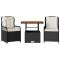 Ensemble à manger de jardin avec coussins 3 pcs NoirCet ensemble de salle à manger de jardin est un excellent choix pour les repas en plein air ou pour vous détendre dans le jardin, dans l'arrière-cour ou sur la terrasse. Matériau durable : la résine tressée, également connue sous le nom de poly rotin, est un matériau synthétique solide et nécessitant peu d'entretien qui ressemble au rotin naturel. Il est léger, facile à nettoyer et couramment utilisé pour les meubles d'extérieur en raison de sa durabilité et de ses propriétés de résistance aux intempéries.Dossier réglable : ce siège de jardin est doté d'une poignée. Vous pouvez régler le dossier dans n'importe quelle position en tirant sur la poignée et le remettre rapidement dans sa position initiale.Housse amovible et lavable : le coussin de siège est doté d'une housse amovible pour un lavage et un entretien faciles.Dessus de table réglable : le dessus de table peut être soulevé pour rendre la table plus haute, ce qui transforme la table d'extérieur d'une table basse à une table de salle à manger. Elle est parfaite pour recevoir des invités ou prendre des repas à l'extérieur.Dessus stable et facile à nettoyer : cette table de jardin a un dessus en bois d'acacia robuste, durable et facile à nettoyer avec un chiffon humide. Bon à savoir :Pour que vos meubles d'extérieur restent beaux, nous vous recommandons de les protéger avec une housse imperméable. Maximum 110 kg par siège. Soyez conscient du risque de feu ouvert et d'autres sources de forte chaleur à proximité de l'appareil.