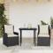 Ensemble à manger de jardin avec coussins 3 pcs NoirCet ensemble de salle à manger de jardin est un excellent choix pour les repas en plein air ou pour vous détendre dans le jardin, dans l'arrière-cour ou sur la terrasse. Matériau durable : la résine tressée, également connue sous le nom de poly rotin, est un matériau synthétique solide et nécessitant peu d'entretien qui ressemble au rotin naturel. Il est léger, facile à nettoyer et couramment utilisé pour les meubles d'extérieur en raison de sa durabilité et de ses propriétés de résistance aux intempéries.Dossier réglable : ce siège de jardin est doté d'une poignée. Vous pouvez régler le dossier dans n'importe quelle position en tirant sur la poignée et le remettre rapidement dans sa position initiale.Expérience d'assise confortable : ce mobilier d'extérieur, doté de coussins épais, offre une expérience d'assise confortable.Housse amovible et lavable : le coussin de siège est doté d'une housse amovible pour un lavage et un entretien faciles.Dessus en verre : le dessus de la table d'extérieur est fabriqué en verre trempé solide et durable, ce qui le rend facile à nettoyer avec un chiffon humide et ajoute une touche d'élégance à votre espace extérieur. Bon à savoir :Pour que vos meubles d'extérieur restent beaux, nous vous recommandons de les protéger avec une housse imperméable. Maximum 110 kg par siège. Soyez conscient du risque de feu ouvert et d'autres sources de forte chaleur à proximité de l'appareil.