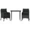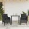 Ensemble à manger de jardin avec coussins 3 pcs NoirCet ensemble de salle à manger de jardin est un excellent choix pour les repas en plein air ou pour vous détendre dans le jardin, l'arrière-cour ou le patio. Matériau durable : la résine tressée, également connue sous le nom de poly rotin, est un matériau synthétique solide et nécessitant peu d'entretien qui ressemble au rotin naturel. Il est léger, facile à nettoyer et couramment utilisé pour les meubles d'extérieur en raison de sa durabilité et de ses propriétés de résistance aux intempéries.Expérience d'assise confortable : ce mobilier d'extérieur, doté de coussins épais, offre une expérience d'assise confortable.Housse amovible et lavable : ces coussins de siège sont dotés de housses amovibles pour un lavage et un entretien faciles.Dessus en verre : le dessus de la table d'extérieur est fabriqué en verre trempé solide et durable, ce qui le rend facile à nettoyer avec un chiffon humide et ajoute une touche d'élégance à votre espace extérieur.Cadre robuste et stable : le cadre en acier enduit de poudre assure la solidité et la stabilité du meuble de jardin pour une utilisation quotidienne à l'extérieur. Bon à savoir :Pour que vos meubles d'extérieur restent beaux, nous vous recommandons de les protéger avec une housse imperméable. Maximum 110 kg par siège. Soyez conscient du risque de feu ouvert et d'autres sources de forte chaleur à proximité de l'appareil.