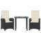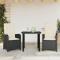 Ensemble à manger de jardin avec coussins 3 pcs NoirCet ensemble de salle à manger de jardin est un excellent choix pour les repas en plein air ou pour vous détendre dans le jardin, dans l'arrière-cour ou sur la terrasse. Matériau durable : la résine tressée, également connue sous le nom de poly rotin, est un matériau synthétique solide et nécessitant peu d'entretien qui ressemble au rotin naturel. Il est léger, facile à nettoyer et couramment utilisé pour les meubles d'extérieur en raison de sa durabilité et de ses propriétés de résistance aux intempéries. Dossier réglable : ce siège de jardin est doté d'une poignée. Vous pouvez régler le dossier dans n'importe quelle position en tirant sur la poignée et le remettre rapidement dans sa position initiale. Expérience d'assise confortable : ce mobilier d'extérieur, doté de coussins épais, offre une expérience d'assise confortable. Housse amovible et lavable : ces coussins de siège sont dotés de housses amovibles pour un lavage et un entretien faciles. Les coussins de dossier ont un rabat à l'arrière pour une fixation facile aux dossiers. Dessus en verre : le dessus de la table d'extérieur est fabriqué en verre trempé solide et durable, ce qui le rend facile à nettoyer avec un chiffon humide et ajoute une touche d'élégance à votre espace extérieur. Bon à savoir : Pour que vos meubles d'extérieur restent beaux, nous vous recommandons de les protéger avec une housse imperméable. Maximum 110 kg par siège. Soyez conscient du risque de feux ouverts et d'autres sources de forte chaleur à proximité du produit.