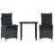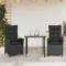 Ensemble à manger de jardin avec coussins 3 pcs NoirCet ensemble de salle à manger de jardin est un excellent choix pour les repas en plein air ou pour vous détendre dans le jardin, dans l'arrière-cour ou sur la terrasse. Matériau durable : la résine tressée, également connue sous le nom de poly rotin, est un matériau synthétique solide et nécessitant peu d'entretien qui ressemble au rotin naturel. Il est léger, facile à nettoyer et couramment utilisé pour les meubles d'extérieur en raison de sa durabilité et de ses propriétés de résistance aux intempéries. Dossier réglable : ce siège de jardin est doté d'une poignée. Vous pouvez régler le dossier dans n'importe quelle position en tirant sur la poignée et le remettre rapidement dans sa position initiale. Expérience d'assise confortable : ce mobilier d'extérieur, doté de coussins épais, offre une expérience d'assise confortable. Housse amovible et lavable : ces coussins de siège sont dotés de housses amovibles pour un lavage et un entretien faciles. Les coussins de dossier ont un rabat à l'arrière pour une fixation facile aux dossiers. Dessus en verre : le dessus de la table d'extérieur est fabriqué en verre trempé solide et durable, ce qui le rend facile à nettoyer avec un chiffon humide et ajoute une touche d'élégance à votre espace extérieur. Bon à savoir : Pour que vos meubles d'extérieur restent beaux, nous vous recommandons de les protéger avec une housse imperméable. Maximum 110 kg par siège. Soyez conscient du risque de feux ouverts et d'autres sources de forte chaleur à proximité du produit.