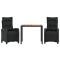 Ensemble à manger de jardin avec coussins 3 pcs NoirCet ensemble de salle à manger de jardin est un excellent choix pour les repas en plein air ou pour vous détendre dans le jardin, l'arrière-cour ou le patio. Matériau durable : la résine tressée, également connue sous le nom de poly rotin, est un matériau synthétique solide et nécessitant peu d'entretien qui ressemble au rotin naturel. Il est léger, facile à nettoyer et couramment utilisé pour les meubles d'extérieur en raison de sa durabilité et de ses propriétés de résistance aux intempéries. Dossier et repose-pied réglables : ce siège de jardin est doté d'une poignée. Vous pouvez régler le dossier et le repose-pied dans n'importe quelle position en tirant sur la poignée, et les remettre rapidement dans leur position initiale. Dessus stable et facile à nettoyer : cette table de jardin a un dessus en bois d'acacia robuste, durable et facile à nettoyer avec un chiffon humide. Expérience d'assise confortable : ce mobilier d'extérieur, doté de coussins épais, offre une expérience d'assise confortable. Housse amovible et lavable : ces coussins de siège sont dotés de housses amovibles pour un lavage et un entretien faciles. Bon à savoir : Pour que vos meubles d'extérieur restent beaux, nous vous recommandons de les protéger avec une housse imperméable. Maximum 110 kg par siège. Soyez conscient du risque de feu ouvert et d'autres sources de forte chaleur à proximité de l'appareil.