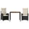 Ensemble à manger de jardin avec coussins 3 pcs NoirCet ensemble de salle à manger de jardin est un excellent choix pour les repas en plein air ou pour vous détendre dans le jardin, dans l'arrière-cour ou sur la terrasse. Matériau durable : la résine tressée, également connue sous le nom de poly rotin, est un matériau synthétique solide et nécessitant peu d'entretien qui ressemble au rotin naturel. Il est léger, facile à nettoyer et couramment utilisé pour les meubles d'extérieur en raison de sa durabilité et de ses propriétés de résistance aux intempéries. Dossier réglable : ce siège de jardin est doté d'une poignée. Vous pouvez régler le dossier dans n'importe quelle position en tirant sur la poignée et le remettre rapidement dans sa position initiale. Expérience d'assise confortable : ce mobilier d'extérieur, doté de coussins épais, offre une expérience d'assise confortable. Housse amovible et lavable : ces coussins de siège sont dotés de housses amovibles pour un lavage et un entretien faciles. Les coussins de dossier ont un rabat à l'arrière pour une fixation facile aux dossiers. Dessus stable et facile à nettoyer : cette table de jardin a un dessus en bois d'acacia robuste, durable et facile à nettoyer avec un chiffon humide. Bon à savoir : Pour que vos meubles d'extérieur restent beaux, nous vous recommandons de les protéger avec une housse imperméable. Maximum 110 kg par siège. Soyez conscient du risque de feu ouvert et d'autres sources de forte chaleur à proximité de l'appareil.