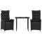 Ensemble à manger de jardin avec coussins 3 pcs NoirCet ensemble de salle à manger de jardin est un excellent choix pour les repas en plein air ou pour vous détendre dans le jardin, l'arrière-cour ou le patio. Matériau durable : la résine tressée, également connue sous le nom de poly rotin, est un matériau synthétique solide et nécessitant peu d'entretien qui ressemble au rotin naturel. Il est léger, facile à nettoyer et couramment utilisé pour les meubles d'extérieur en raison de sa durabilité et de ses propriétés de résistance aux intempéries. Dossier et repose-pied réglables : ce siège de jardin est doté d'une poignée. Vous pouvez régler le dossier et le repose-pied dans n'importe quelle position en tirant sur la poignée, et les remettre rapidement dans leur position initiale. Expérience d'assise confortable : ce mobilier d'extérieur, doté de coussins épais, offre une expérience d'assise confortable. Housse amovible et lavable : ces coussins de siège sont dotés de housses amovibles pour un lavage et un entretien faciles. Les coussins de dossier ont un rabat à l'arrière pour une fixation facile aux dossiers. Dessus en verre : le dessus de la table d'extérieur est fabriqué en verre trempé solide et durable, ce qui le rend facile à nettoyer avec un chiffon humide et ajoute une touche d'élégance à votre espace extérieur. Bon à savoir : Pour que vos meubles d'extérieur restent beaux, nous vous recommandons de les protéger avec une housse imperméable. Maximum 110 kg par siège. Soyez conscient du risque de feu ouvert et d'autres sources de forte chaleur à proximité de l'appareil.