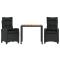Ensemble à manger de jardin avec coussins 3 pcs NoirCet ensemble de salle à manger de jardin est un excellent choix pour les repas en plein air ou pour vous détendre dans le jardin, l'arrière-cour ou le patio. Matériau durable : la résine tressée, également connue sous le nom de poly rotin, est un matériau synthétique solide et nécessitant peu d'entretien qui ressemble au rotin naturel. Il est léger, facile à nettoyer et couramment utilisé pour les meubles d'extérieur en raison de sa durabilité et de ses propriétés de résistance aux intempéries. Dossier réglable : ce siège de jardin est doté d'une poignée. Vous pouvez régler le dossier dans n'importe quelle position en tirant sur la poignée et le remettre rapidement dans sa position initiale. Dessus stable et facile à nettoyer : cette table de jardin a un dessus en bois d'acacia robuste, durable et facile à nettoyer avec un chiffon humide. Expérience d'assise confortable : ce mobilier d'extérieur, doté de coussins épais, offre une expérience d'assise confortable. Housse amovible et lavable : ces coussins de siège sont dotés de housses amovibles pour un lavage et un entretien faciles. Bon à savoir : Pour que vos meubles d'extérieur restent beaux, nous vous recommandons de les protéger avec une housse imperméable. Maximum 110 kg par siège. Soyez conscient du risque de feu ouvert et d'autres sources de forte chaleur à proximité de l'appareil.