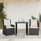Ensemble à manger de jardin avec coussins 3 pcs NoirCet ensemble de salle à manger de jardin est un excellent choix pour les repas en plein air ou pour vous détendre dans le jardin, dans l'arrière-cour ou sur la terrasse. Matériau durable : la résine tressée, également connue sous le nom de poly rotin, est un matériau synthétique solide et nécessitant peu d'entretien qui ressemble au rotin naturel. Il est léger, facile à nettoyer et couramment utilisé pour les meubles d'extérieur en raison de sa durabilité et de ses propriétés de résistance aux intempéries. Dossier réglable : ce siège de jardin est doté d'une poignée. Vous pouvez régler le dossier dans n'importe quelle position en tirant sur la poignée et le remettre rapidement dans sa position initiale. Expérience d'assise confortable : ce mobilier d'extérieur, doté de coussins épais, offre une expérience d'assise confortable. Housse amovible et lavable : le coussin de siège est doté d'une housse amovible pour un lavage et un entretien faciles. Dessus en verre : le dessus de la table d'extérieur est fabriqué en verre trempé solide et durable, ce qui le rend facile à nettoyer avec un chiffon humide et ajoute une touche d'élégance à votre espace extérieur. Bon à savoir : Pour que vos meubles d'extérieur restent beaux, nous vous recommandons de les protéger avec une housse imperméable. Maximum 110 kg par siège. Soyez conscient du risque de feux ouverts et d'autres sources de forte chaleur à proximité du produit.