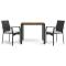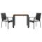 Ensemble à manger de jardin avec coussins 3 pcs NoirCet ensemble de salle à manger de jardin tendance, au design élégant et contemporain, est un excellent choix pour manger ou vous détendre dans votre jardin. Matériau résistant aux intempéries : la résine tressée, également connue sous le nom de rotin poly, résiste aux intempéries et est facile à nettoyer. Elle reste belle à l'extérieur pendant une longue période. Elle offre une excellente qualité, commodité et un aspect esthétique. Cadre robuste : les cadres en acier enduit de poudre rendent l'ensemble de salle à manger d'extérieur robuste et stable pour une utilisation quotidienne à l'extérieur. Dessus de table pratique : le dessus de table en bois d'acacia massif est parfait pour placer des boissons, des aliments et des décorations. Il a une belle apparence et est facile à nettoyer. Conception modulaire : l'ensemble de salle à manger de jardin est flexible et facile à déplacer, vous pouvez donc le combiner avec d'autres segments modulaires dans la boutique en ligne pour créer vos propres configurations d'ensemble de salle à manger de jardin ! Expérience d'assise confortable : le dossier ajoute un confort d'assise supplémentaire à la chaise de jardin. De plus, les coussins bien rembourrés vous permettent de vous asseoir confortablement. Bon à savoir : Pour faciliter au maximum le montage, chaque produit est livré avec des instructions. Remarque : Pour que vos meubles d'extérieur restent beaux, nous vous recommandons de les protéger avec une housse imperméable. Maximum 110 kg par siège.