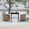 Ensemble à manger de jardin avec coussins 3 pcs marronCet élégant ensemble de salle à manger de jardin est destiné à être le point de mire de votre jardin ou patio ! C'est un excellent choix pour les repas en plein air ou pour vous détendre dans l'espace extérieur ! Les cadres en acier endui de poudre rendent la table et les chaises solides et stables pour une utilisation quotidienne en extérieur. Grâce à la résine tressée résistante à l'eau, les chaises sont faciles à nettoyer et résistantes à l'usure. La forme ergonomique et les coussins amovibles bien rembourrés en mousse offrent un confort d'assise optimal. Les housses de coussin en polyester, qui nécessitent peu d'entretien, peuvent être facilement retirées et lavées. En outre, le dessus de table en verre lisse est facile à nettoyer avec un chiffon humide et est parfait pour placer des repas, des boissons et d'autres objets décoratifs. Remarque : afin de prolonger la durée de vie des meubles d'extérieur, nous vous recommandons de les protéger avec une housse imperméable. Maximum 110 kg par siège. Soyez conscient du risque de feu ouvert et d'autres sources de forte chaleur à proximité de l'appareil.