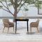 Matériau : résine tressée, acier enduit de poudre, bois d'acacia massif avec une finition huilée, verre