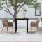 Matériau : résine tressée, acier enduit de poudre, bois d'acacia massif avec une finition huilée, verre