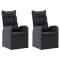 Ensemble à manger de jardin avec coussins 3 pcs noirCet élégant ensemble de salle à manger de jardin est destiné à être le point de mire de votre jardin ou patio ! C'est un excellent choix pour les repas en plein air ou pour vous détendre dans l'espace extérieur ! Les cadres en acier enduit de poudre rendent la table et les chaises robustes et stables pour une utilisation quotidienne à l'extérieur. Grâce à la résine tressée résistante à l'eau, les chaises sont faciles à nettoyer et résistantes à l'usure. Le dossier peut être ajusté en tirant sur le bouton sur le côté. Grâce à leur construction légère, elles sont faciles à déplacer. Les coussins de siège bien rembourrés ajoutent également un confort supplémentaire. Les housses en polyester nécessitant peu d'entretien peuvent être retirées et lavées. De plus, le dessus de table en verre lisse est facile à nettoyer avec un chiffon humide et parfait pour ranger des repas, des boissons et d'autres articles décoratifs. Remarque : afin de prolonger la durée de vie des meubles d'extérieur, nous vous recommandons de les protéger avec une housse imperméable.