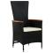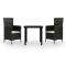 Ensemble à manger de jardin avec coussins 3 pcs noirCet élégant ensemble de salle à manger de jardin est destiné à être le point de mire de votre jardin ou patio ! C'est un excellent choix pour les repas en plein air ou pour vous détendre dans l'espace extérieur ! Les cadres en acier enduit de poudre rendent la table et les chaises robustes et stables pour une utilisation quotidienne à l'extérieur. Grâce à la résine tressée résistante à l'eau, les chaises sont faciles à nettoyer et résistantes à l'usure. Le dossier peut être ajusté en tirant sur le bouton sur le côté. Grâce à leur construction légère, elles sont faciles à déplacer. Les coussins de siège bien rembourrés ajoutent également un confort supplémentaire. Les housses en polyester nécessitant peu d'entretien peuvent être retirées et lavées. De plus, le dessus de table en verre lisse est facile à nettoyer avec un chiffon humide et parfait pour ranger des repas, des boissons et d'autres articles décoratifs. Remarque : afin de prolonger la durée de vie des meubles d'extérieur, nous vous recommandons de les protéger avec une housse imperméable. Maximum 110 kg par siège. Soyez conscient du risque de feux ouverts et d'autres sources de forte chaleur à proximité du produit.