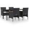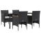 Ensemble à manger de jardin avec coussins 5 pcs NoirCet ensemble de salle à manger de jardin, au design élégant et contemporain, est un excellent choix pour manger ou se détendre dans le jardin. Matériau résistant aux intempéries : fabriqué en résine tressée résistante aux intempéries et à l'eau, cet ensemble de salle à manger de jardin est facile à nettoyer, résistant à l'usure et adapté à un usage quotidien. Cadre robuste : les cadres en acier enduit de poudre rendent l'ensemble de salle à manger d'extérieur robuste et stable pour une utilisation quotidienne à l'extérieur. Dessus de table pratique : le dessus lisse de la table de salle à manger est en verre trempé, facile à nettoyer avec un chiffon humide. De plus, le dessus robuste est parfait pour placer des repas, des boissons et d'autres objets décoratifs. Design confortable : conçues avec des dossiers et des accoudoirs incurvés, ces chaises d'extérieur offrent un maximum de confort. Confort supplémentaire : les coussins bien rembourrés offrent un confort ultime pendant votre temps d'assise. Remarque : Afin de prolonger la durée de vie de votre mobilier d'extérieur, nous vous recommandons de le protéger avec une housse imperméable. Chaque produit est livré avec un manuel de montage dans la boîte pour un montage facile. Maximum 110 kg par siège. Soyez conscient du risque de feu ouvert et d'autres sources de forte chaleur à proximité de l'appareil.