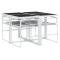 Ensemble à manger de jardin avec coussins 5 pcs blanc textilèneCet ensemble de salle à manger de jardin est un excellent choix pour les repas en plein air ou pour vous détendre dans le jardin, dans l'arrière-cour ou sur la terrasse. Durable et longue durée de vie : le tissu textilène est apprécié pour sa durabilité, résistance à l'eau et à la décoloration, facilité d'entretien et protection contre les rayons UV et la moisissure, ce qui en fait un choix idéal pour le meuble d'extérieur et les structures d'ombrage.Rangement compact : ces chaises sont dotées d'un dossier rabattable, ce qui permet de les ranger facilement sous la table. Une fois pliées, elles se rangent parfaitement sous la table, formant un cube peu encombrant.Housse amovible et lavable : ces coussins de siège sont dotés de housses amovibles pour un lavage et un entretien faciles.Dessus en verre : le dessus de la table d'extérieur est fabriqué en verre trempé solide et durable, ce qui le rend facile à nettoyer avec un chiffon humide et ajoute une touche d'élégance à votre espace extérieur.Cadre robuste et stable : le cadre en acier enduit de poudre assure la solidité et la stabilité du meuble de jardin pour une utilisation quotidienne à l'extérieur.Bon à savoir :Pour que vos meubles d'extérieur restent beaux, nous vous recommandons de les protéger avec une housse imperméable. Maximum 110 kg par siège. Soyez conscient du risque de feu ouvert et d'autres sources de forte chaleur à proximité de l'appareil.