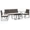 Ensemble à manger de jardin avec coussins 5 pcs marron rotin PPProfitez d'un moment de café confortable dans votre espace extérieur avec cet ensemble à manger de jardin ! Cet ensemble à manger est un complément parfait à votre jardin et à votre terrasse, créant une impression durable ! Matériau durable : le polypropylène (PP) est un plastique populaire qui est également l'un des matériaux les plus utilisés dans le mobilier d'extérieur. Il est léger, robuste et résistant aux chocs.Cadre robuste : le cadre en acier de l'ensemble à manger de jardin assure robustesse et stabilité.Conception réfléchie : les coussins bien rembourrés assurent le confort de votre assise. De plus, les matériaux en plastique et en acier rendent le siège d'extérieur facile à nettoyer.Dessus de table robuste : le dessus de table robuste de la table à manger est parfait pour placer des repas, des boissons, des vases, des bols de fruits ou d'autres objets décoratifs.Conception modulaire : l'ensemble de salon de jardin est flexible et facile à déplacer, vous pouvez donc le combiner avec d'autres segments modulaires de la boutique en ligne pour créer vos propres configurations personnelles d'ensemble à manger d'extérieur ! Remarque :Pour que vos meubles d'extérieur restent beaux, nous vous recommandons de les protéger avec une housse imperméable. Maximum 110 kg par siège.