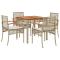 Ensemble à manger de jardin avec coussins 5pcs Beige poly rotinCet ensemble de salle à manger de jardin est un excellent choix pour les repas en plein air ou pour vous détendre dans le jardin, dans l'arrière-cour ou sur la terrasse. Matériau durable : la résine tressée, également connue sous le nom de poly rotin, est un matériau synthétique solide et nécessitant peu d'entretien qui ressemble au rotin naturel. Il est léger, facile à nettoyer et couramment utilisé pour les meubles d'extérieur en raison de sa durabilité et de ses propriétés de résistance aux intempéries.Expérience d'assise confortable : ce mobilier d'extérieur, doté de coussins épais, offre une expérience d'assise confortable.Housse amovible et lavable : ces coussins de siège sont dotés de housses amovibles pour un lavage et un entretien faciles.Dessus stable et facile à nettoyer : cette table de jardin a un dessus en bois d'acacia robuste, durable et facile à nettoyer avec un chiffon humide.Cadre robuste et stable : le cadre en acier enduit de poudre assure la solidité et la stabilité du meuble de jardin pour une utilisation quotidienne à l'extérieur. Bon à savoir :Pour que vos meubles d'extérieur restent beaux, nous vous recommandons de les protéger avec une housse imperméable. Maximum 110 kg par siège.