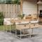 Ensemble à manger de jardin avec coussins 5pcs Beige poly rotinCet ensemble de salle à manger de jardin est un excellent choix pour les repas en plein air ou pour vous détendre dans le jardin, dans l'arrière-cour ou sur la terrasse. Matériau durable : la résine tressée, également connue sous le nom de poly rotin, est un matériau synthétique solide et nécessitant peu d'entretien qui ressemble au rotin naturel. Il est léger, facile à nettoyer et couramment utilisé pour les meubles d'extérieur en raison de sa durabilité et de ses propriétés de résistance aux intempéries.Rangement compact : ces chaises sont dotées d'un dossier rabattable, ce qui permet de les ranger facilement sous la table. Une fois pliées, elles se rangent parfaitement sous la table, formant un cube peu encombrant.Expérience d'assise confortable : ce mobilier d'extérieur, doté de coussins épais, offre une expérience d'assise confortable.Housse amovible et lavable : ces coussins de siège sont dotés de housses amovibles pour un lavage et un entretien faciles. Les housses de coussin ont un rabat à l'arrière pour une fixation facile aux dossiers.Dessus stable et facile à nettoyer : cette table de jardin a un dessus en bois d'acacia robuste, durable et facile à nettoyer avec un chiffon humide. Bon à savoir :Pour que vos meubles d'extérieur restent beaux, nous vous recommandons de les protéger avec une housse imperméable. Maximum 110 kg par siège. Soyez conscient du risque de feu ouvert et d'autres sources de forte chaleur à proximité de l'appareil.