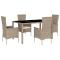 Ensemble à manger de jardin avec coussins 5pcs Beige poly rotinCet ensemble de salle à manger de jardin est un excellent choix pour les repas en plein air ou pour vous détendre dans le jardin, dans l'arrière-cour ou sur la terrasse. Matériau durable : la résine tressée, également connue sous le nom de poly rotin, est un matériau synthétique solide et nécessitant peu d'entretien qui ressemble au rotin naturel. Il est léger, facile à nettoyer et couramment utilisé pour les meubles d'extérieur en raison de sa durabilité et de ses propriétés de résistance aux intempéries.Expérience d'assise confortable : ce mobilier d'extérieur, doté de coussins épais, offre une expérience d'assise confortable.Housse amovible et lavable : ces coussins de siège sont dotés de housses amovibles pour un lavage et un entretien faciles.Dessus en verre : le dessus de la table d'extérieur est fabriqué en verre trempé solide et durable, ce qui le rend facile à nettoyer avec un chiffon humide et ajoute une touche d'élégance à votre espace extérieur. Bon à savoir :Pour que vos meubles d'extérieur restent beaux, nous vous recommandons de les protéger avec une housse imperméable.