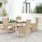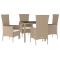 Ensemble à manger de jardin avec coussins 5pcs Beige poly rotinCet ensemble de salle à manger de jardin tendance, au design élégant et contemporain, est un excellent choix pour manger ou vous détendre dans votre jardin. Matériau résistant aux intempéries : la résine tressée, également connue sous le nom de rotin poly, résiste aux intempéries et est facile à nettoyer. Elle reste belle à l'extérieur pendant une longue période. Elle offre une excellente qualité, commodité et un aspect esthétique.Cadre robuste : les cadres en acier enduit de poudre rendent l'ensemble de salle à manger d'extérieur robuste et stable pour une utilisation quotidienne à l'extérieur.Dessus de table pratique : le dessus de table robuste est parfait pour placer des repas, des boissons et d'autres objets décoratifs.Conception modulaire : l'ensemble de salle à manger de jardin est flexible et facile à déplacer, vous pouvez donc le combiner avec d'autres segments modulaires dans la boutique en ligne pour créer vos propres configurations d'ensemble de salle à manger de jardin !Expérience d'assise confortable : les coussins bien rembourrés offrent du confort pour votre temps d'assise. Bon à savoir :Pour faciliter au maximum le montage, chaque produit est livré avec des instructions. Remarque :Pour que vos meubles d'extérieur restent beaux, nous vous recommandons de les protéger avec une housse imperméable.