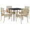 Ensemble à manger de jardin avec coussins 5pcs Beige poly rotinCet ensemble de salle à manger de jardin est un excellent choix pour les repas en plein air ou pour vous détendre dans le jardin, dans l'arrière-cour ou sur la terrasse. Matériau durable : la résine tressée, également connue sous le nom de poly rotin, est un matériau synthétique solide et nécessitant peu d'entretien qui ressemble au rotin naturel. Il est léger, facile à nettoyer et couramment utilisé pour les meubles d'extérieur en raison de sa durabilité et de ses propriétés de résistance aux intempéries.Expérience d'assise confortable : ce mobilier d'extérieur, doté de coussins épais, offre une expérience d'assise confortable.Housse amovible et lavable : ces coussins de siège sont dotés de housses amovibles pour un lavage et un entretien faciles.Dessus en verre : le dessus de la table d'extérieur est fabriqué en verre trempé solide et durable, ce qui le rend facile à nettoyer avec un chiffon humide et ajoute une touche d'élégance à votre espace extérieur.Cadre robuste et stable : le cadre en acier enduit de poudre assure la solidité et la stabilité du meuble de jardin pour une utilisation quotidienne à l'extérieur. Bon à savoir :Pour que vos meubles d'extérieur restent beaux, nous vous recommandons de les protéger avec une housse imperméable. Maximum 110 kg par siège.