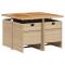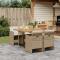 Ensemble à manger de jardin avec coussins 5pcs Beige poly rotinCet ensemble de salle à manger de jardin est un excellent choix pour les repas en plein air ou pour vous détendre dans le jardin, dans l'arrière-cour ou sur la terrasse. Matériau durable : la résine tressée, également connue sous le nom de poly rotin, est un matériau synthétique solide et nécessitant peu d'entretien qui ressemble au rotin naturel. Il est léger, facile à nettoyer et couramment utilisé pour les meubles d'extérieur en raison de sa durabilité et de ses propriétés de résistance aux intempéries. Rangement compact : ces chaises sont dotées d'un dossier rabattable, ce qui permet de les ranger facilement sous la table. Une fois pliées, elles se rangent parfaitement sous la table, formant un cube peu encombrant. Expérience d'assise confortable : ce mobilier d'extérieur, doté de coussins épais, offre une expérience d'assise confortable. Housse amovible et lavable : ces coussins de siège sont dotés de housses amovibles pour un lavage et un entretien faciles. Dessus stable et facile à nettoyer : cette table de jardin a un dessus en bois d'acacia robuste, durable et facile à nettoyer avec un chiffon humide. Bon à savoir : Pour que vos meubles d'extérieur restent beaux, nous vous recommandons de les protéger avec une housse imperméable.