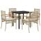 Ensemble à manger de jardin avec coussins 5pcs Beige poly rotinCet ensemble de salle à manger de jardin est un excellent choix pour les repas en plein air ou pour vous détendre dans le jardin, dans l'arrière-cour ou sur la terrasse. Matériau durable : la résine tressée, également connue sous le nom de poly rotin, est un matériau synthétique solide et nécessitant peu d'entretien qui ressemble au rotin naturel. Il est léger, facile à nettoyer et couramment utilisé pour les meubles d'extérieur en raison de sa durabilité et de ses propriétés de résistance aux intempéries. Expérience d'assise confortable : ce mobilier d'extérieur, doté de coussins épais, offre une expérience d'assise confortable. Housse amovible et lavable : ces coussins de siège sont dotés de housses amovibles pour un lavage et un entretien faciles. Dessus en verre : le dessus de la table d'extérieur est fabriqué en verre trempé solide et durable, ce qui le rend facile à nettoyer avec un chiffon humide et ajoute une touche d'élégance à votre espace extérieur. Cadre robuste et stable : le cadre en acier enduit de poudre assure la solidité et la stabilité du meuble de jardin pour une utilisation quotidienne à l'extérieur. Bon à savoir : Pour que vos meubles d'extérieur restent beaux, nous vous recommandons de les protéger avec une housse imperméable. Maximum 110 kg par siège.