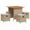 Ensemble à manger de jardin avec coussins 5pcs Beige poly rotinCet ensemble de salle à manger de jardin est un excellent choix pour les repas en plein air ou pour vous détendre dans le jardin, dans l'arrière-cour ou sur la terrasse. Matériau durable : la résine tressée, également connue sous le nom de poly rotin, est un matériau synthétique solide et nécessitant peu d'entretien qui ressemble au rotin naturel. Elle est légère, facile à nettoyer et couramment utilisée pour les meubles d'extérieur en raison de sa durabilité et de ses propriétés de résistance aux intempéries. Dessus stable et facile à nettoyer : cette table de jardin a un dessus en bois d'acacia robuste, durable et facile à nettoyer avec un chiffon humide. Expérience d'assise confortable : ce mobilier d'extérieur, doté de coussins épais, offre une expérience d'assise confortable. Housse amovible et lavable : ces coussins de siège sont dotés de housses amovibles pour un lavage et un entretien faciles. Trou de poignée pratique : le tabouret est doté d'un trou de poignée de chaque côté, ce qui le rend facile à porter et à transporter. Bon à savoir : Pour que vos meubles d'extérieur restent beaux, nous vous recommandons de les protéger avec une housse imperméable.