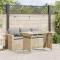 Ensemble à manger de jardin et coussins 2 pcs beige poly rotinCet ensemble de salle à manger de jardin est un excellent choix pour les repas en plein air ou pour vous détendre dans le jardin, dans l'arrière-cour ou sur la terrasse. Matériau durable : la résine tressée, également connue sous le nom de poly rotin, est un matériau synthétique solide et nécessitant peu d'entretien qui ressemble au rotin naturel. Il est léger, facile à nettoyer et couramment utilisé pour les meubles d'extérieur en raison de sa durabilité et de ses propriétés de résistance aux intempéries.Dessus en verre : le dessus de la table d'extérieur est fabriqué en verre trempé solide et durable, ce qui le rend facile à nettoyer avec un chiffon humide et ajoute une touche d'élégance à votre espace extérieur.Expérience d'assise confortable : ce mobilier d'extérieur, doté de coussins épais, offre une expérience d'assise confortable.Housse amovible et lavable : ces coussins de siège sont dotés de housses amovibles pour un lavage et un entretien faciles.Cadre robuste et stable : le cadre en acier enduit de poudre assure la solidité et la stabilité du meuble de jardin pour une utilisation quotidienne à l'extérieur. Bon à savoir :Pour que vos meubles d'extérieur restent beaux, nous vous recommandons de les protéger avec une housse imperméable. Maximum 110 kg par siège.