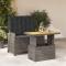 Ensemble à manger de jardin et coussins 2 pcs gris rotinCet ensemble de salle à manger de jardin est un excellent choix pour les repas en plein air ou pour vous détendre dans le jardin, dans l'arrière-cour ou sur la terrasse. Matériau durable : la résine tressée, également connue sous le nom de poly rotin, est un matériau synthétique solide et nécessitant peu d'entretien qui ressemble au rotin naturel. Il est léger, facile à nettoyer et couramment utilisé pour les meubles d'extérieur en raison de sa durabilité et de ses propriétés de résistance aux intempéries. Dossier réglable : ce siège de jardin est doté d'une poignée. Vous pouvez régler le dossier dans n'importe quelle position en tirant sur la poignée et le remettre rapidement dans sa position initiale. Dessus de table réglable : le dessus de table peut être soulevé pour rendre la table plus haute, ce qui transforme la table d'extérieur d'une table basse à une table de salle à manger. Elle est parfaite pour recevoir des invités ou prendre des repas à l'extérieur. Housse amovible et lavable : ces coussins de siège sont dotés de housses amovibles pour un lavage et un entretien faciles. Les coussins de dossier ont un rabat à l'arrière pour une fixation facile aux dossiers. Expérience d'assise confortable : ce mobilier d'extérieur, doté de coussins épais, offre une expérience d'assise confortable. Bon à savoir : Pour que vos meubles d'extérieur restent beaux, nous vous recommandons de les protéger avec une housse imperméable. Maximum 110 kg par siège. Soyez conscient du risque de feu ouvert et d'autres sources de forte chaleur à proximité de l'appareil.
