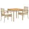 Ensemble à manger de jardin et coussins 3 pcs Beige poly rotinCet ensemble de salle à manger de jardin est un excellent choix pour les repas en plein air ou pour vous détendre dans le jardin, dans l'arrière-cour ou sur la terrasse. Matériau durable : la résine tressée, également connue sous le nom de poly rotin, est un matériau synthétique solide et nécessitant peu d'entretien qui ressemble au rotin naturel. Il est léger, facile à nettoyer et couramment utilisé pour les meubles d'extérieur en raison de sa durabilité et de ses propriétés de résistance aux intempéries.Expérience d'assise confortable : ce mobilier d'extérieur, doté de coussins épais, offre une expérience d'assise confortable.Housse amovible et lavable : ces coussins de siège sont dotés de housses amovibles pour un lavage et un entretien faciles.Dessus stable et facile à nettoyer : cette table de jardin a un dessus en bois d'acacia robuste, durable et facile à nettoyer avec un chiffon humide.Cadre robuste et stable : le cadre en acier enduit de poudre assure la solidité et la stabilité du meuble de jardin pour une utilisation quotidienne à l'extérieur. Bon à savoir :Pour que vos meubles d'extérieur restent beaux, nous vous recommandons de les protéger avec une housse imperméable. Maximum 110 kg par siège.