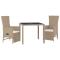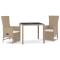 Ensemble à manger de jardin et coussins 3 pcs Beige poly rotinCet ensemble de salle à manger de jardin tendance, au design élégant et contemporain, est un excellent choix pour manger ou vous détendre dans votre jardin. Matériau résistant aux intempéries : la résine tressée, également connue sous le nom de rotin poly, résiste aux intempéries et est facile à nettoyer. Elle reste belle à l'extérieur pendant une longue période. Elle offre une excellente qualité, commodité et un aspect esthétique.Cadre robuste : les cadres en acier enduit de poudre rendent l'ensemble de salle à manger d'extérieur robuste et stable pour une utilisation quotidienne à l'extérieur.Dessus de table pratique : le dessus de table robuste est parfait pour placer des repas, des boissons et d'autres objets décoratifs.Conception modulaire : l'ensemble de salle à manger de jardin est flexible et facile à déplacer, vous pouvez donc le combiner avec d'autres segments modulaires dans la boutique en ligne pour créer vos propres configurations d'ensemble de salle à manger de jardin !Fonction d'inclinaison : les chaises de jardin sont spécialement conçues avec une fonction d'inclinaison afin que vous puissiez régler le dossier et le repose-pied selon votre confort. Bon à savoir :Pour faciliter au maximum le montage, chaque produit est livré avec des instructions. Remarque :Pour que vos meubles d'extérieur restent beaux, nous vous recommandons de les protéger avec une housse imperméable. Maximum 110 kg par siège. Soyez conscient du risque de feu ouvert et d'autres sources de forte chaleur à proximité de l'appareil.