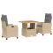 Ensemble à manger de jardin et coussins 3 pcs Beige poly rotinCet ensemble de salle à manger de jardin est un excellent choix pour les repas en plein air ou pour vous détendre dans le jardin, dans l'arrière-cour ou sur la terrasse. Matériau durable : la résine tressée, également connue sous le nom de poly rotin, est un matériau synthétique solide et nécessitant peu d'entretien qui ressemble au rotin naturel. Il est léger, facile à nettoyer et couramment utilisé pour les meubles d'extérieur en raison de sa durabilité et de ses propriétés de résistance aux intempéries. Dossier réglable : ce siège de jardin est doté d'une poignée. Vous pouvez régler le dossier dans n'importe quelle position en tirant sur la poignée et le remettre rapidement dans sa position initiale. Dessus de table réglable : le dessus de table peut être soulevé pour rendre la table plus haute, ce qui transforme la table d'extérieur d'une table basse à une table de salle à manger. Elle est parfaite pour recevoir des invités ou prendre des repas à l'extérieur. Housse amovible et lavable : ces coussins de siège sont dotés de housses amovibles pour un lavage et un entretien faciles. Les coussins de dossier ont un rabat à l'arrière pour une fixation facile aux dossiers. Expérience d'assise confortable : ce mobilier d'extérieur, doté de coussins épais, offre une expérience d'assise confortable. Bon à savoir : Pour que vos meubles d'extérieur restent beaux, nous vous recommandons de les protéger avec une housse imperméable. Maximum 110 kg par siège. Soyez conscient du risque de feu ouvert et d'autres sources de forte chaleur à proximité de l'appareil.