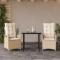 Ensemble à manger de jardin et coussins 3 pcs Beige poly rotinCet ensemble de salle à manger de jardin est un excellent choix pour les repas en plein air ou pour vous détendre dans le jardin, dans l'arrière-cour ou sur la terrasse. Matériau durable : la résine tressée, également connue sous le nom de poly rotin, est un matériau synthétique solide et nécessitant peu d'entretien qui ressemble au rotin naturel. Il est léger, facile à nettoyer et couramment utilisé pour les meubles d'extérieur en raison de sa durabilité et de ses propriétés de résistance aux intempéries. Dossier réglable : ce siège de jardin est doté d'une poignée. Vous pouvez régler le dossier dans n'importe quelle position en tirant sur la poignée et le remettre rapidement dans sa position initiale. Expérience d'assise confortable : ce mobilier d'extérieur, doté de coussins épais, offre une expérience d'assise confortable. Housse amovible et lavable : ces coussins de siège sont dotés de housses amovibles pour un lavage et un entretien faciles. Les coussins de dossier ont un rabat à l'arrière pour une fixation facile aux dossiers. Dessus en verre : le dessus de la table d'extérieur est fabriqué en verre trempé solide et durable, ce qui le rend facile à nettoyer avec un chiffon humide et ajoute une touche d'élégance à votre espace extérieur. Bon à savoir : Pour que vos meubles d'extérieur restent beaux, nous vous recommandons de les protéger avec une housse imperméable. Maximum 110 kg par siège. Soyez conscient du risque de feu ouvert et d'autres sources de forte chaleur à proximité de l'appareil.