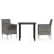 Ensemble à manger de jardin et coussins 3 pcs Gris et noirCet ensemble de salle à manger de jardin est un excellent choix pour manger ou vous détendre dans l'espace extérieur ! Les cadres en acier enduit de poudre rendent la table et les chaises robustes et stables pour une utilisation quotidienne à l'extérieur. Grâce à la résine tressée résistante à l'eau, les chaises sont faciles à nettoyer et conviennent à un usage quotidien. Le dessus de table en verre lisse est facile à nettoyer avec un chiffon humide et parfait pour placer les repas, les boissons et autres articles décoratifs. Remarque : afin de prolonger la durée de vie des meubles d'extérieur, nous vous recommandons de les protéger avec une housse imperméable. Maximum 110 kg par siège. Soyez conscient du risque de feux ouverts et d'autres sources de forte chaleur à proximité du produit.