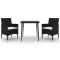 Ensemble à manger de jardin coussins 3 pcs Résine tressée VerreCet ensemble élégant de salle à manger de jardin vous permet de passer des moments agréables et confortables avec votre famille et vos amis. Le cadre en acier enduit de poudre rend la table et les chaises robustes et durables. Fabriquées en résine tressée résistante aux intempéries et imperméable, les chaises sont faciles à nettoyer, résistantes à l'usure et adaptées à un usage quotidien. Le dessus de table en verre lisse est idéal pour poser des boissons, de la nourriture ou des objets décoratifs. De plus, le coussin de siège bien rembourré ajoute un confort supplémentaire aux chaises. Remarque : afin de prolonger la durée de vie des meubles d'extérieur, nous vous recommandons de les protéger avec une housse imperméable. Maximum 110 kg par siège. Soyez conscient du risque de feu ouvert et d'autres sources de forte chaleur à proximité de l'appareil.