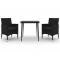 Ensemble à manger de jardin coussins 3 pcs Résine tressée VerreCet ensemble élégant de salle à manger de jardin vous permet de passer des moments agréables et confortables avec votre famille et vos amis. Le cadre en acier enduit de poudre rend la table et les chaises robustes et durables. Fabriquées en résine tressée résistante aux intempéries et imperméable, les chaises sont faciles à nettoyer, résistantes à l'usure et adaptées à un usage quotidien. Le dessus de table en verre lisse est idéal pour poser des boissons, de la nourriture ou des objets décoratifs. De plus, le coussin de siège bien rembourré ajoute un confort supplémentaire aux chaises. Remarque : afin de prolonger la durée de vie des meubles d'extérieur, nous vous recommandons de les protéger avec une housse imperméable. Maximum 110 kg par siège. Soyez conscient du risque de feu ouvert et d'autres sources de forte chaleur à proximité de l'appareil.