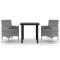 Ensemble à manger de jardin coussins 3 pcs Résine tressée VerreCet ensemble élégant de salle à manger de jardin vous permet de passer des moments agréables et confortables avec votre famille et vos amis. Le cadre en acier enduit de poudre rend la table et les chaises robustes et durables. Fabriquées en résine tressée résistante aux intempéries et imperméable, les chaises sont faciles à nettoyer, résistantes à l'usure et adaptées à un usage quotidien. Le dessus de table en verre lisse est idéal pour poser des boissons, de la nourriture ou des objets décoratifs. De plus, le coussin de siège bien rembourré ajoute un confort supplémentaire aux chaises. Remarque : afin de prolonger la durée de vie des meubles d'extérieur, nous vous recommandons de les protéger avec une housse imperméable. Maximum 110 kg par siège. Soyez conscient du risque de feux ouverts et d'autres sources de forte chaleur à proximité du produit.