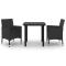 Ensemble à manger de jardin coussins 3 pcs Résine tressée VerreCet ensemble élégant de salle à manger de jardin vous permet de passer des moments agréables et confortables avec votre famille et vos amis. Le cadre en acier enduit de poudre rend la table et les chaises robustes et durables. Fabriquées en résine tressée résistante aux intempéries et imperméable, les chaises sont faciles à nettoyer, résistantes à l'usure et adaptées à un usage quotidien. Le dessus de table en verre lisse est idéal pour poser des boissons, de la nourriture ou des objets décoratifs. De plus, le coussin de siège bien rembourré ajoute un confort supplémentaire aux chaises. Remarque : afin de prolonger la durée de vie des meubles d'extérieur, nous vous recommandons de les protéger avec une housse imperméable. Maximum 110 kg par siège. Soyez conscient du risque de feux ouverts et d'autres sources de forte chaleur à proximité du produit.