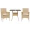 Ensemble à manger de jardin et coussins 3 pcs beige rotin verreCet ensemble de salle à manger de jardin est un excellent choix pour les repas en plein air ou pour vous détendre dans le jardin, dans l'arrière-cour ou sur la terrasse. Matériau durable : la résine tressée, également connue sous le nom de poly rotin, est un matériau synthétique solide et nécessitant peu d'entretien qui ressemble au rotin naturel. Il est léger, facile à nettoyer et couramment utilisé pour les meubles d'extérieur en raison de sa durabilité et de ses propriétés de résistance aux intempéries.Expérience d'assise confortable : cet ensemble de meubles d'extérieur, doté de coussins épais, offre une expérience d'assise confortable.Housse amovible et lavable : ces coussins de siège sont dotés de housses amovibles pour un lavage et un entretien faciles.Dessus en verre : le dessus de la table d'extérieur est fabriqué en verre trempé solide et durable, ce qui le rend facile à nettoyer avec un chiffon humide et ajoute une touche d'élégance à votre espace extérieur. Bon à savoir :Pour que vos meubles d'extérieur restent beaux, nous vous recommandons de les protéger avec une housse imperméable. Maximum 110 kg par siège. Soyez conscient du risque de feu ouvert et d'autres sources de forte chaleur à proximité de l'appareil.
