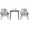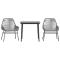 Ensemble à manger jardin coussins 3 pcs gris poly rotin verreCet ensemble de salle à manger de jardin est un excellent choix pour les repas en plein air ou pour vous détendre dans le jardin, dans l'arrière-cour ou sur la terrasse. Matériau durable : la résine tressée, également connue sous le nom de poly rotin, est un matériau synthétique solide et nécessitant peu d'entretien qui ressemble au rotin naturel. Elle est légère, facile à nettoyer et couramment utilisée pour les meubles d'extérieur en raison de sa durabilité et de ses propriétés de résistance aux intempéries. Cadre robuste et stable : le cadre en acier enduit de poudre est solide, stable, durable et résistant à la corrosion et aux intempéries, ce qui garantit des performances durables. Dossier et accoudoir pratiques : cette chaise de jardin est dotée d'un dossier et de deux accoudoirs qui offrent un soutien et un confort optimaux aux utilisateurs. Housse amovible et lavable : ces coussins de siège sont dotés de housses amovibles pour un lavage et un entretien faciles. Dessus en verre : le dessus de la table d'extérieur est fabriqué en verre trempé solide et durable, ce qui le rend facile à nettoyer avec un chiffon humide et ajoute une touche d'élégance à votre espace extérieur. Bon à savoir : Pour que vos meubles d'extérieur restent beaux, nous vous recommandons de les protéger avec une housse imperméable. Maximum 110 kg par siège. Soyez conscient du risque de feux ouverts et d'autres sources de forte chaleur à proximité du produit.