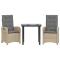 Ensemble à manger de jardin et coussins 3 pcs mélange beigeCet ensemble de salle à manger de jardin est un excellent choix pour les repas en plein air ou pour vous détendre dans le jardin, dans l'arrière-cour ou sur la terrasse. Matériau durable : la résine tressée, également connue sous le nom de poly rotin, est un matériau synthétique solide et nécessitant peu d'entretien qui ressemble au rotin naturel. Il est léger, facile à nettoyer et couramment utilisé pour les meubles d'extérieur en raison de sa durabilité et de ses propriétés de résistance aux intempéries. Dossier réglable : ce siège de jardin est doté d'une poignée. Vous pouvez régler le dossier dans n'importe quelle position en tirant sur la poignée et le remettre rapidement dans sa position initiale. Expérience d'assise confortable : ce mobilier d'extérieur, doté de coussins épais, offre une expérience d'assise confortable. Housse amovible et lavable : ces coussins de siège sont dotés de housses amovibles pour un lavage et un entretien faciles. Les coussins de dossier ont un rabat à l'arrière pour une fixation facile aux dossiers. Dessus en verre : le dessus de la table d'extérieur est fabriqué en verre trempé solide et durable, ce qui le rend facile à nettoyer avec un chiffon humide et ajoute une touche d'élégance à votre espace extérieur. Bon à savoir : Pour que vos meubles d'extérieur restent beaux, nous vous recommandons de les protéger avec une housse imperméable. Maximum 110 kg par siège. Soyez conscient du risque de feux ouverts et d'autres sources de forte chaleur à proximité du produit.