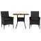 Ensemble à manger de jardin et coussins 3 pcs noir rotin acaciaCet ensemble de salle à manger de jardin est un excellent choix pour les repas en plein air ou pour vous détendre dans le jardin, dans l'arrière-cour ou sur la terrasse. Matériau durable : la résine tressée, également connue sous le nom de poly rotin, est un matériau synthétique solide et nécessitant peu d'entretien qui ressemble au rotin naturel. Il est léger, facile à nettoyer et couramment utilisé pour les meubles d'extérieur en raison de sa durabilité et de ses propriétés de résistance aux intempéries.Expérience d'assise confortable : cet ensemble de meubles d'extérieur, doté de coussins épais, offre une expérience d'assise confortable.Housse amovible et lavable : ces coussins de siège sont dotés de housses amovibles pour un lavage et un entretien faciles.Dessus stable et facile à nettoyer : cette table de jardin a un dessus en bois d'acacia robuste, durable et facile à nettoyer avec un chiffon humide. Bon à savoir :Pour que vos meubles d'extérieur restent beaux, nous vous recommandons de les protéger avec une housse imperméable. Maximum 110 kg par siège. Soyez conscient du risque de feu ouvert et d'autres sources de forte chaleur à proximité de l'appareil.