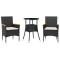 Ensemble à manger de jardin et coussins 3 pcs noir rotin verreCet ensemble de salle à manger de jardin est un excellent choix pour les repas en plein air ou pour vous détendre dans le jardin, dans l'arrière-cour ou sur la terrasse. Matériau durable : la résine tressée, également connue sous le nom de poly rotin, est un matériau synthétique solide et nécessitant peu d'entretien qui ressemble au rotin naturel. Il est léger, facile à nettoyer et couramment utilisé pour les meubles d'extérieur en raison de sa durabilité et de ses propriétés de résistance aux intempéries.Expérience d'assise confortable : cet ensemble de meubles d'extérieur, doté de coussins épais, offre une expérience d'assise confortable.Housse amovible et lavable : ces coussins de siège sont dotés de housses amovibles pour un lavage et un entretien faciles.Dessus en verre : le dessus de la table d'extérieur est fabriqué en verre trempé solide et durable, ce qui le rend facile à nettoyer avec un chiffon humide et ajoute une touche d'élégance à votre espace extérieur. Bon à savoir :Pour que vos meubles d'extérieur restent beaux, nous vous recommandons de les protéger avec une housse imperméable. Maximum 110 kg par siège. Soyez conscient du risque de feu ouvert et d'autres sources de forte chaleur à proximité de l'appareil.