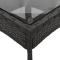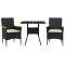 Ensemble à manger de jardin et coussins 3 pcs noir rotin verreCet ensemble de salle à manger de jardin est un excellent choix pour les repas en plein air ou pour vous détendre dans le jardin, dans l'arrière-cour ou sur la terrasse. Matériau durable : la résine tressée, également connue sous le nom de poly rotin, est un matériau synthétique solide et nécessitant peu d'entretien qui ressemble au rotin naturel. Il est léger, facile à nettoyer et couramment utilisé pour les meubles d'extérieur en raison de sa durabilité et de ses propriétés de résistance aux intempéries.Expérience d'assise confortable : cet ensemble de meubles d'extérieur, doté de coussins épais, offre une expérience d'assise confortable.Housse amovible et lavable : ces coussins de siège sont dotés de housses amovibles pour un lavage et un entretien faciles.Dessus en verre : le dessus de la table d'extérieur est fabriqué en verre trempé solide et durable, ce qui le rend facile à nettoyer avec un chiffon humide et ajoute une touche d'élégance à votre espace extérieur. Bon à savoir :Pour que vos meubles d'extérieur restent beaux, nous vous recommandons de les protéger avec une housse imperméable. Maximum 110 kg par siège. Soyez conscient du risque de feu ouvert et d'autres sources de forte chaleur à proximité de l'appareil.